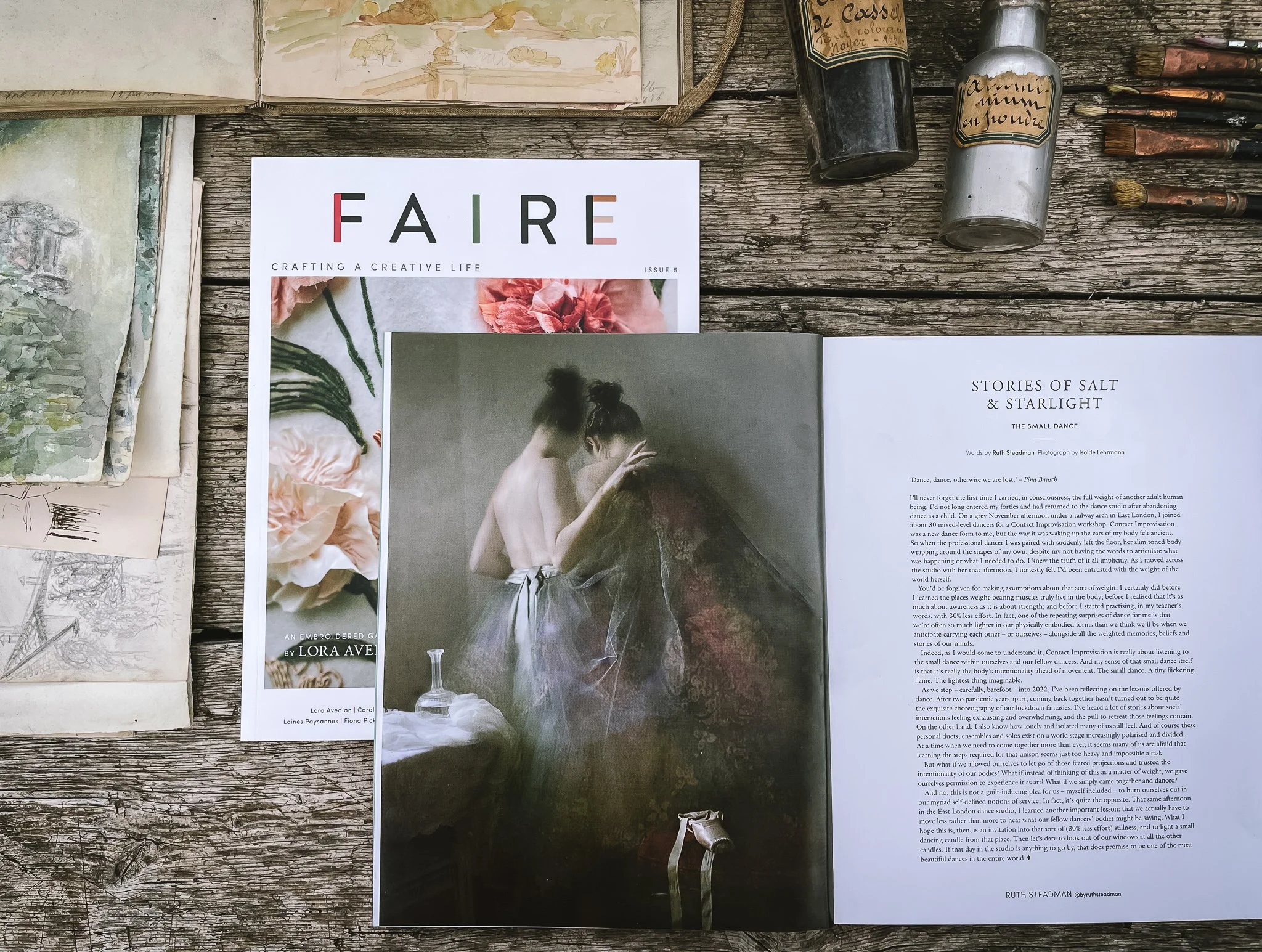 Every issue of FAIRE features the column, Stories of Salt and Starlight, by Northern Irish Writer, Storyteller and Psychotherapist Ruth Steadman. Her column explores the power of working with our own stories, crafting their trauma and their wonder into something that might restore and inspire.