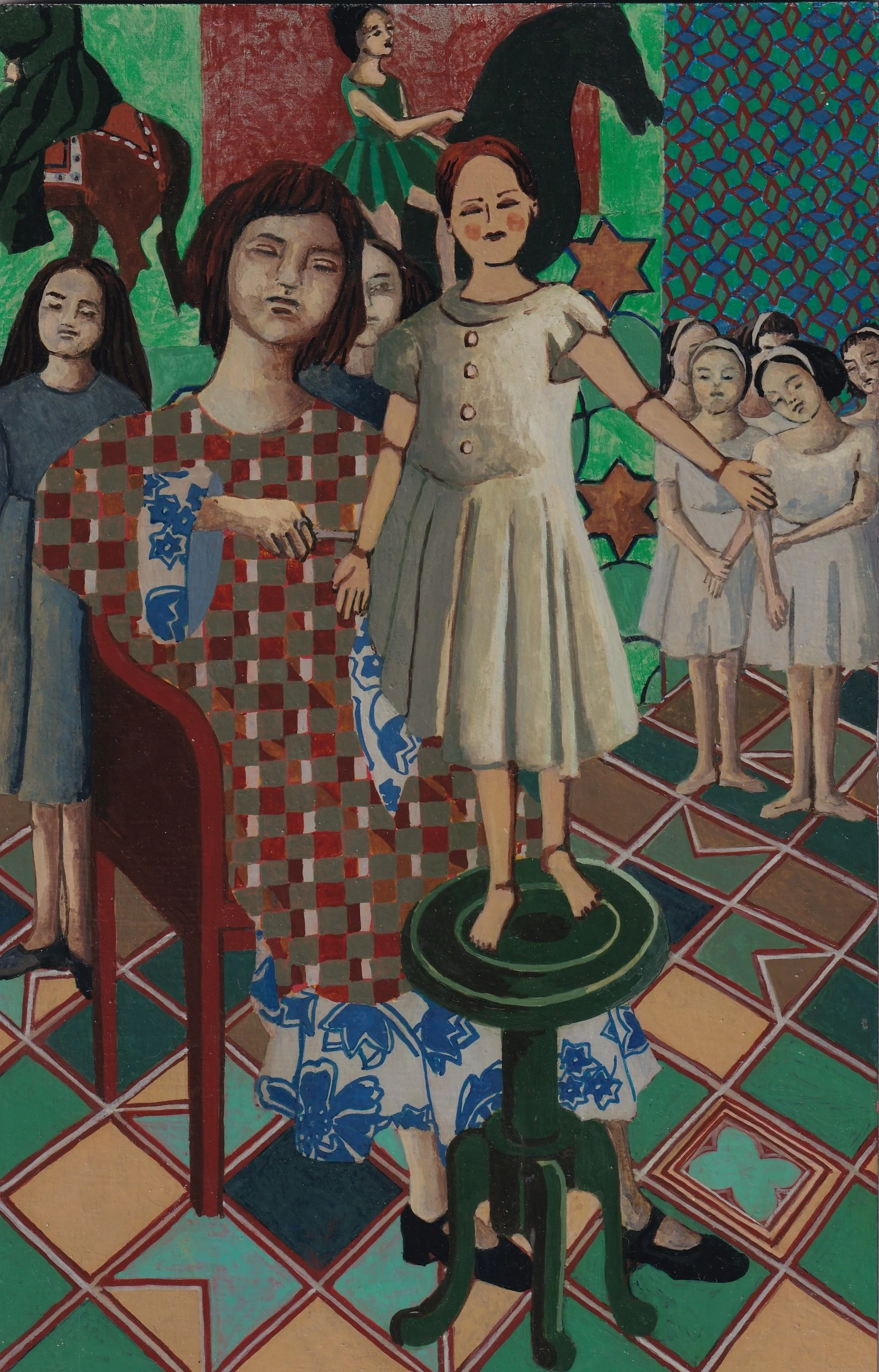 KM: Keeping painting while bringing up three daughters. Whilst family life is a strong seam of narrative in my work - finding the time to keep painting in a concentrated and reflective way was a huge battle combined with teaching studio and cultural studies at art school. Buying time to paint while paying nursery fees was not realistic and the situation for artist mothers is worse still today. I painted at night, a habit that I still maintain now, but I do try to stop by 12 am.