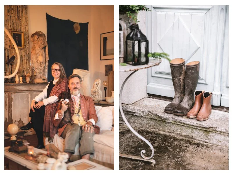 Alchemists and artists who paint with words, objects and atmosphere, Valérie and Sébastien are restless creatives, who have been collaborating for more than 24 years. Their creativity has many outlets and encompasses antiques and interior decoration, fine art curation, fashion deconstruction / reconstruction, jewellery-making and writing. They live in the heart of the Ardèche region of France in a heritage home-turned-boutique with adjoining workshops where they have the space to create annual exhibitions and an atelier/boutique for their fashion label, Revers de Fortune.
